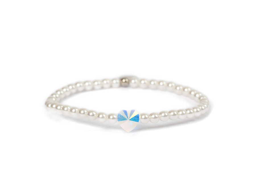 A BRIDE kollekciót a tavaszi esküvők romantikus hangulata inspirálta. A pasztell színvilágú Swarovski kristály gyöngyök elegáns kiegészítői minden menyasszony és koszorúslány öltözékének. A finom pasztell árnyalatok tökéletesen illeszkednek az esküvői ruhák tónusaihoz. A gyöngy mindig különleges választás, de különösen az, erre a különleges alkalomra. A Swarovski speciális csiszolási mechanizmusával készült, gumis damilra felfűzött, fehér gyöngyház színű, 4mm-es kristály gyöngyei alkotják az ékszer alapját, amelyek egy, a szerelmet szimbolizáló, szív alakú kristályt fognak közre. A ródiumozott, 925-ös finomságú ezüstből készült PELOTE tag és záróeleme tökéletes befejezést ad a finom színösszeállítású darabnak. A fotó színei a valóságtól enyhén eltérhetnek. A termék az S6 kategóriába tartozik és több méretben rendelhető. Viseld a BRIDE SPARKokat, légy örökké boldog és SZIKRÁZZ - SPARK Yourself!