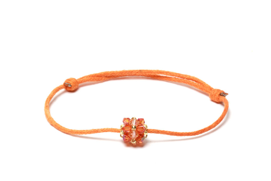 Az ékszert a 15 darab különlegesen csiszolt, narancsszínű Swarovski biconból és japán gyöngyökből, kézzel fűzött SPARK kristálygömb teszi különlegessé, amely viaszolt pamut szálra fűzve díszíti viselője csuklóját. Fel- illetve levétele a stopperekkel rögzített csúszó csomó segítségével pillanatok alatt lehetséges. Az egyes darabok minimum és maximum körmérete a kézi készítés miatt különbözhet. A fotón szereplő termék színe a valóságtól enyhén eltérhet. A karkötő az S1 kategóriába tartozik.