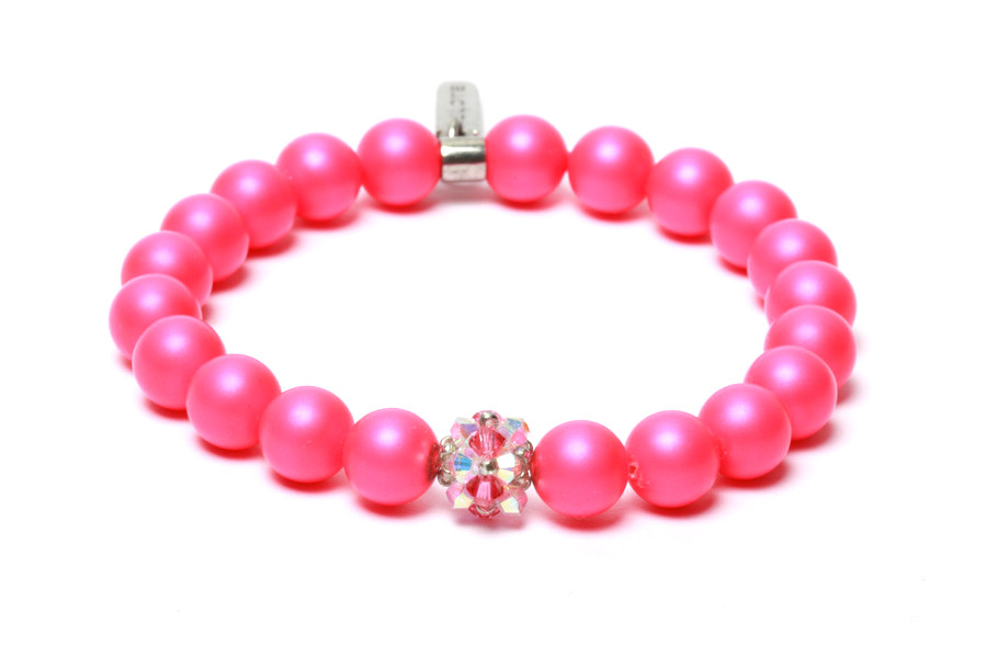 A ragyogó színvilágú COLORS kollekció neon vonalának ékszereit a vidám, tarkabarka cukormázzal borított nyalókák inspirálták. A Swarovski különleges csiszolási mechanizmusával készült, neon pink bevonattal borított, 8mm-es gyöngyöket és a csillogó kristályokból készült SPARK gömböt gumis damilra, kézzel fűztük fel. A 925-ös finomságú, ródiumozott ezüstből készült PELOTE tag és az ezt tartó záróelem ad izgalmas befejezést ennek az élénk színű, fiatalos darabnak. A termék az S3 kategóriába tartozik és több méretben rendelhető. A fotón szereplő ékszer színei a valóságtól eltérhetnek. Viseld a COLORS NEON SPARKjait és SZIKRÁZZ - SPARK Yourself! Válassz szimbólumot! Make your STATEMENT!