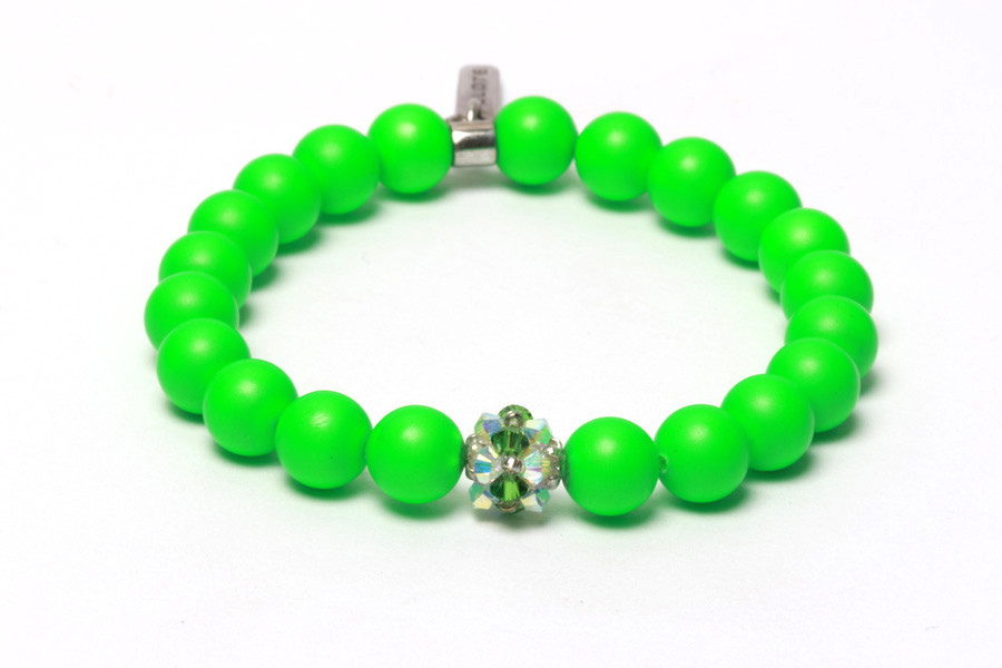 A vidám COLORS kollekció neon vonalának ékszereit a tarkabarka cukormázzal borított nyalókák ihlették. A Swarovski által kifejlesztett, különleges csiszolási mechanizmussal készült, neon sárga bevonattal borított, 8mm-es gyöngyök és a 15 pici, csillogó kristályból készült SPARK gömb gumis damilon szikrázik. Ezüstből készült PELOTE tag és az ezt tartó záróelem díszíti az élénk színű, fiatalos darabot. A termék az S3 kategóriába tartozik és több méretben elérhető. A fotón szereplő ékszer színei a valóságtól eltérhetnek. Viseld a COLORS NEON SPARKjait és SZIKRÁZZ - SPARK Yourself!