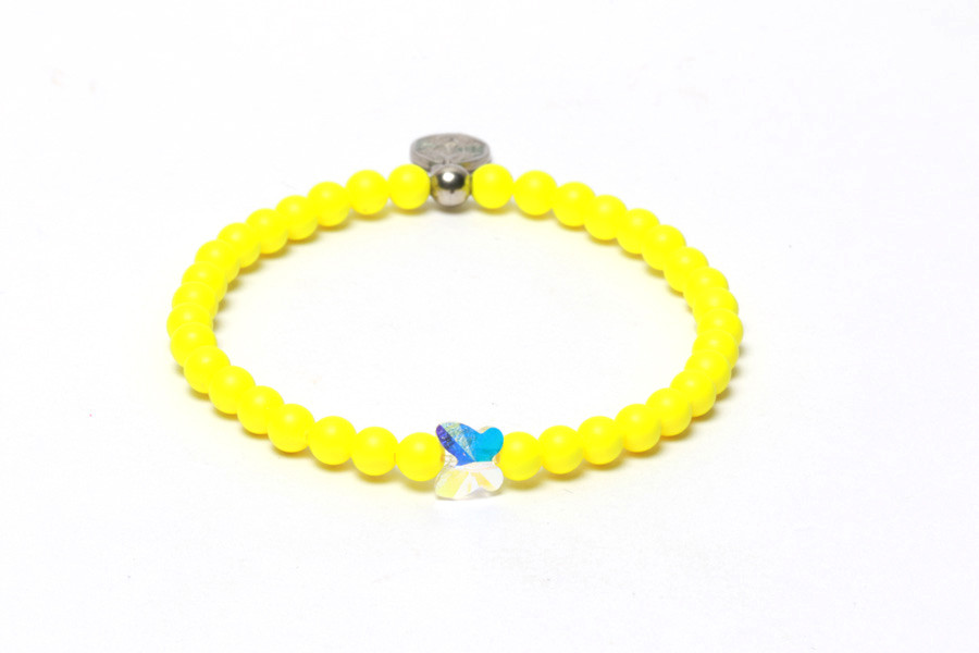 A COLORS kollekció neon vonalának ékszereit a tarka cukormázzal borított nyalókák színvilága inspirálta. A speciális csiszolási mechanizmussal gyártott, gumis damilra, kézzel felfűzött, 4mm-es kristály gyöngyök alkotják az karkötő alapját, amelyeket neon sárga, különleges bevonat borít. A sárga a napsütés és a vidámság színe. A nyár a nyaralás, a szabadság időszaka, ezért is tökéletes választás a gyöngyök sorának közepére felfűzött pillangó alakú, szabadságot jelképező Swarovski kristály. A ródiumozott, ezüst PELOTE tag és a gyöngy formájú tag tartó ad tökéletes befejezést ennek a sugárzóan vidám darabnak. Az ékszer az S6 termékkategóriába tartozik és több méretben rendelhető. A fotó színei a valóságtól enyhén eltérhetnek. Viseld a COLORS NEON SPARKjait és SZIKRÁZZ - SPARK Yourself!