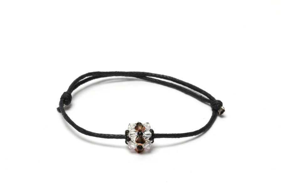 Az ékszert a fekete japán gyöngyök és a különleges, AB bevonatú arany és az átlátszó Swarovski kristályok találkozása teszi különlegessé. A fekete, viaszolt, pamutszál elegánsan illeszkedik a szikrázó SPARK kristály gömbhöz. Stopperekkel rögzített csúszócsomó segítségével egyszerűen felvehető. Az egyes darabok minimum és maximum körmérete a kézi készítés miatt eltérhet. A fotó színe a valóságtól enyhén különbözhet. A karkötő az S1 termékkategóriába tartozik.