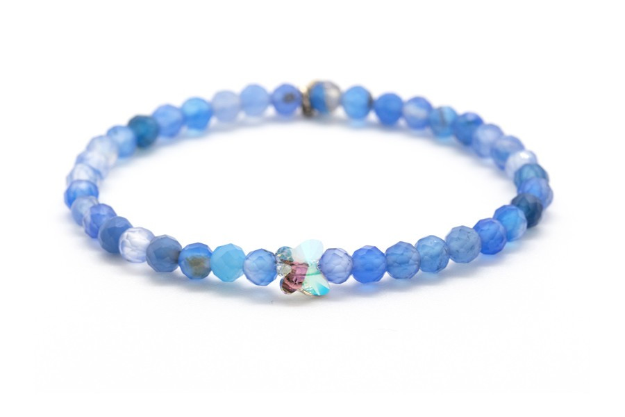 A pillangókat formázó Swarovski kristályokkal díszített ékszerek a szabadság jegyében születtek. A filigrán darabok egyediségét a színpompás drágakövek és az aprólékos kézi munkával történő elkészítés adja. A kék achát gyöngyökből készült karkötő középső eleme egy pillangót formázó, ragyogó Swarovski szimbólum kristály. A kézzel fűzött ékszert 925-ös, ródiumozott ezüstből készült záróelem teszi tökéletessé. Az ékszer színei a valóságban a fotótól enyhén eltérhetnek. A karkötő több méretben rendelhető.