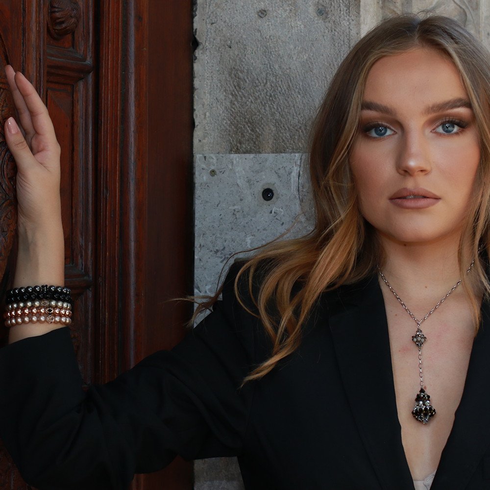 A GATSBY kollekció ékszereit az 1920-as évek hangulata inspirálta. A korszak jellemző stílusirányzata az art deco, amelynek színvilága, a fekete, fehér és arany köszön vissza az ékszeren. A Swarovski által kifejlesztett, különleges csiszolási mechanizmus egyedülálló ragyogást ad nyaklánc fő elemét képező, kézzel fűzött, csepp alakú medálnak, amely számtalan, fekete-fehér -arany színvilágú, szikrázó Swarovski kristályból, aprólékos kézi munkával készül. A 925-ös finomságú ezüst lánc illetve tag tökéletes keretet ad az ennek a szép és formájában is az art deco irányzatra emlékeztető darabnak. A kézi készítés miatt az egyes nyakláncok mérete eltérhet. A fotón szereplő ékszer színei a valóságtól különbözhetnek.