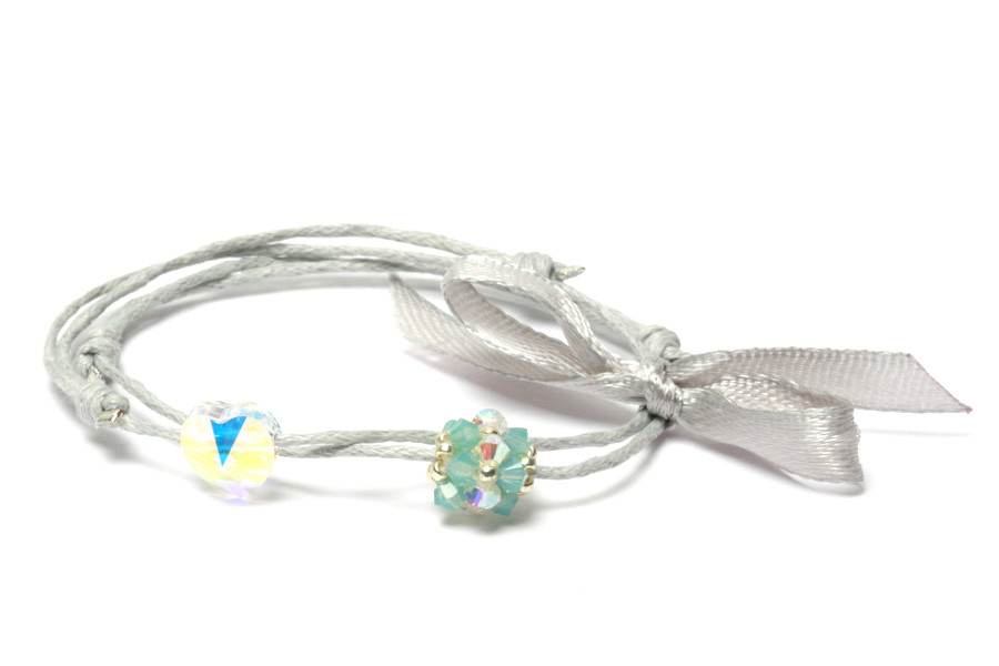 A HEART CANDY kollekció ékszereit a romantikus pasztell színekben pompázó, szerelmes feliratokkal díszített, amerikai szív cukorkák ihlették. A karkötő különlegessége, hogy két ékszert foglal magában amelyeket selyem masni rögzít egymáshoz. A szikrázó, szürke színű Swarovski biconokból és japán gyöngyökből, kézzel fűzött SPARK kristálygömb viaszolt pamut szálra fűzve kedves párosítás a szív alakú szimbólummal díszített STATEMENT karkötővel. A stopperekkel rögzített csúszó csomó könnyű szabályozhatóságot biztosít. Az egyes darabok minimum és maximum körmérete a kézi készítés miatt nem mindig egységes. A fotón szereplő termék színe a valóságtól enyhén eltérhet.