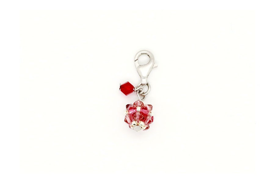 Jakupcsek Gabriella indulásunk óta figyelemmel kíséri kollekcióinkat. Nagy örömünkre szolgál, hogy kedveli termékeinket. Ez a csillogó, piros és rózsaszínű Swarovski kristályokkal díszített “bindzsi”, amely a POWER THROUGH CHARM ékszerek közé tartozik, az ő és tervezőink együttműködésének gyümölcse. Az ékszer fő elemét alkotó SPARK gömb rózsaszínes színvilága, amely tizenöt apró Swarovski kristály aprólékos kézi munkával történő összefűzésével született, izgalmas kontrasztot alkot a piros színű 4 mm-es bicone kristállyal. Segítségével a kombinálható, egymással összefűzhető karkötők egyedi darabokká alakíthatóak. 925-ös ródiumozott ezüstből készült delfinzár segít a “bindzsit” az alapkarkötőre szerelni. Az ékszer izgalmas formája és vidám színvilága kiválóan illeszkedik mind nappali, mind esti viseletünkhöz.