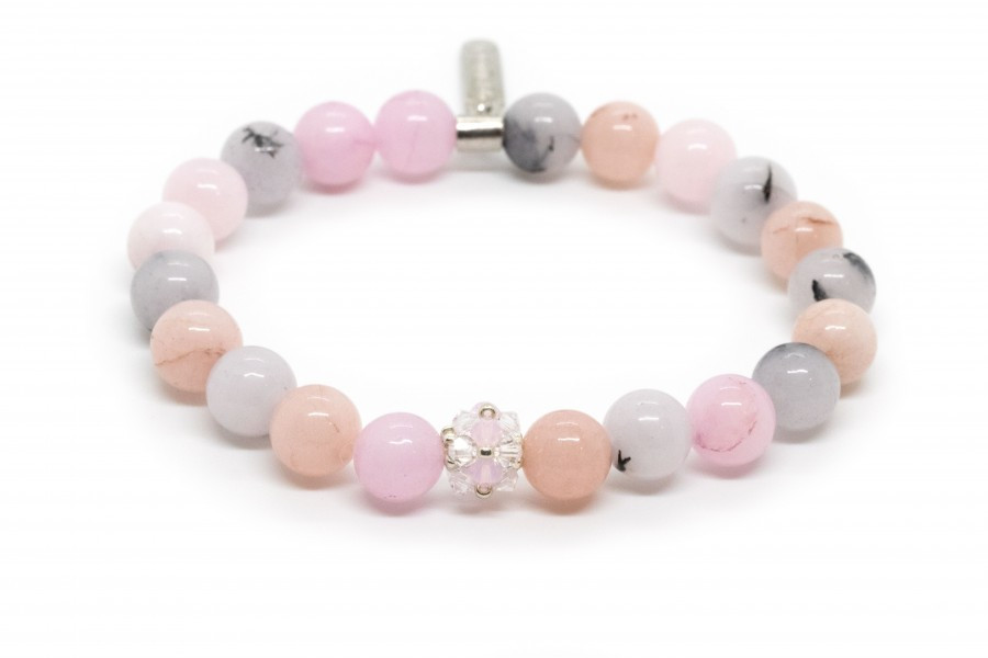 Jakupcsek Gabriella indulásunk óta figyelemmel kíséri kollekcióinkat. Nagy örömünkre szolgál, hogy kedveli termékeinket. Ezt a különleges, cirmos, szürke és rózsaszínű jáde gyöngyökből készült ékszert kifejezetten az ő ajánlásával kínáljuk. A Swarovski különleges csiszolási mechanizmusával készült apró, damilra, kézzel felfűzött, kristály gyöngyei alkotják ezen mutatós karkötő központi elemét, a SPARK gömböt, amelyet 8 mm-es izgalmas színvilágú jáde gyöngyök kereteznek. A ródiumozott, ezüstből készült PELOTE tag és az ezt tartó záróelem ad méltó befejezés az izgalmas darabnak. A fotón szereplő termék színe a valóságtól enyhén eltérhet. Az ékszer az S4 kategóriába tartozik és S, M, L méretben létezik.