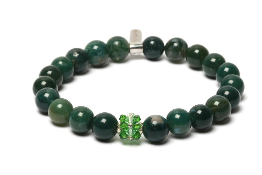 A hiedelem szerint minden hónapnak van egy vagy több ékköve, amelyek szerencsét hoznak az adott hónap szülötteinek. A MONTHS kollekcióban mindenki megtalálhatja a hozzá illő ásványból készített darabot. Gondosan kiválasztott féldrágakövek illetve drágakövek alkotják az ékszerek alapját, amelyek egy színben hozzájuk illő, a Swarovski különleges csiszolási eljárásával készült apró, kézzel felfűzött gyöngyökből álló SPARK gömböt fognak közre. A zöldellő, vidám június karkötője 8 mm-es moha achát gyöngyökből készült. A moha achát az egyensúly kristálya, felszabadítja viselőjét a rá nehezedő lelki, szellemi terhek alól, segít rendezni gondolatait és elérni egy tudatosabb létezést. Már önmagában a színe miatt is, történetileg a természettel, a mezőgazdasággal és a kertekkel kapcsolják össze. Ródiumozott, ezüst PELOTE tag és az ezt tartó záróelem fejezi be az izgalmas színvilágú darabot. A fotón szereplő termék színe a valóságtól enyhén eltérhet. Az ékszer S, M, L méretben létezik.