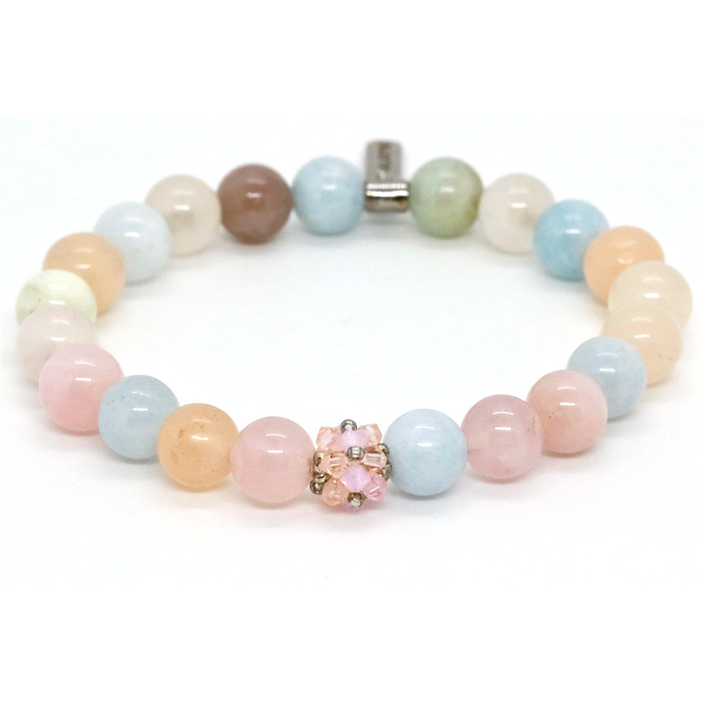 A PICNIC ON THE MEADOW kollekciót a tavasszal ébredő természet, a baráti piknikezés, a nevetés és az együtt töltött, boldog idők hangulata ihlette. Romantikus pasztellek, kedves, pillangót formázó Swarovski kristályok, szikrázó charmok és különleges drágakövek fémjelzik a különleges ékszereket. A pasztell színvilágú, opálosan fénylő berillek és a karkötő középső eleme, a szikrázó Swarovski kristályokból, kézzel fűzött SPARK gömb ragyogásából, különleges kontraszt született. Az akvamarin, morganit, amazonit, goshenit és heliodor gyöngyök véletlenszerűen követik egymást, így minden egyes ékszer más és más. Ródiumozott, ezüst PELOTE tag és az ezt tartó záróelem ad méltó befejezést a romantikus darabnak. A fotón szereplő termék színe a valóságtól enyhén eltérhet. Az ékszer S, M, L méretben létezik.