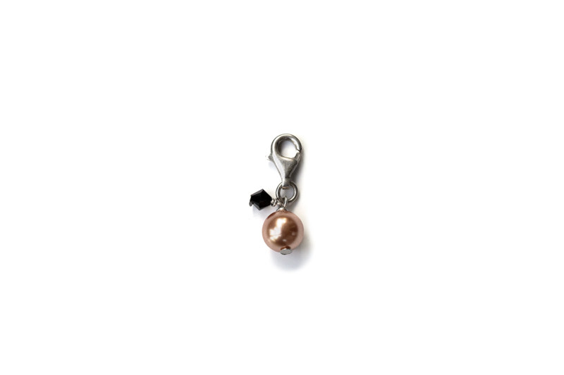 A POWER THROUGH CHARM kollekció ékszerei a variálhatóság és egyediség jegyében születtek. A kedvesen sármos “bindzsik” segítségével a kombinálható, egymással összefűzhető karkötők egyedi darabokká alakíthatóak. A csillogó ékszer, amely egy 3 mm-es, fekete Swarovski bicone kristály és egy 8 mm-es rózsa arany színű Swarovski kristály gyöngy összeépítésével, aprólékos kézi munkával készült 925-ös, ródiumozott, olasz ezüst delfinzár segítségével kerül a kollekció alapkarkötőjére.