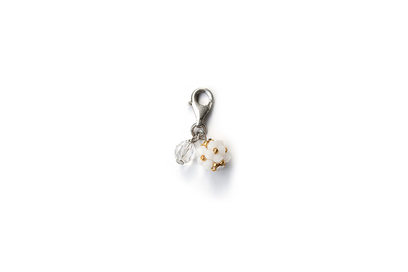 A POWER THROUGH CHARM kollekció ékszerei a variálhatóság és egyediség jegyében születtek. A kedvesen sármos “bindzsik” segítségével a kombinálható, egymással összefűzhető karkötők egyedi darabokká alakíthatóak. A csillogó ékszer, amely színű, 3 mm-es, alabástrom színű Swarovski bicone kristályokból illetve arany japán gyöngyökből fűzött SPARK gömb, plusz egy szikrázó Swarovski kristály összeépítésével, aprólékos kézi munkával készült 925-ös, ródiumozott, olasz ezüst delfinzár segítségével kerül a kollekció alapkarkötőjére.