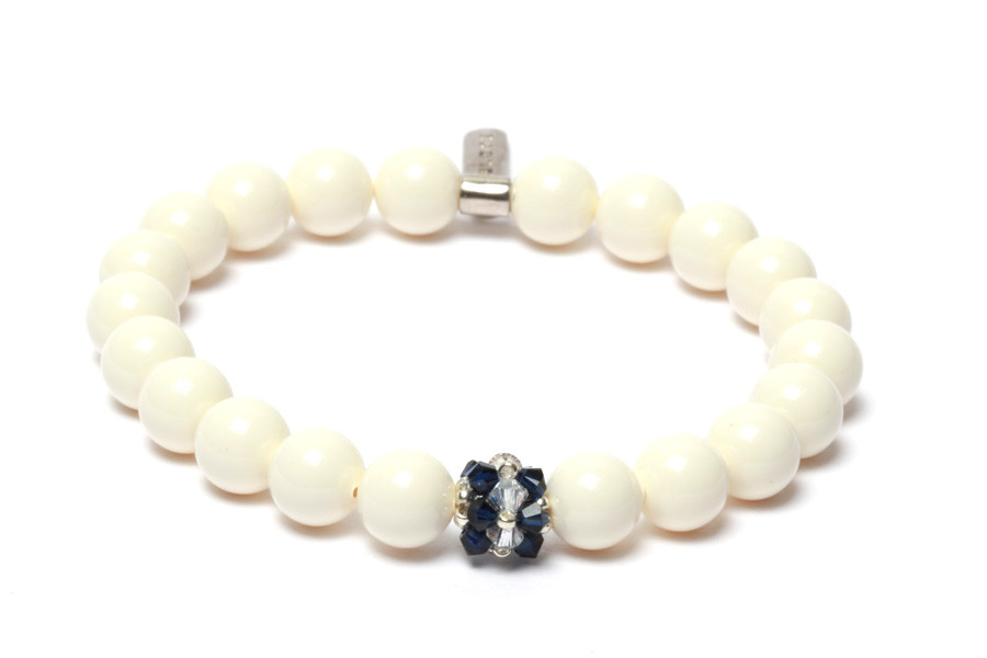 A SAILING kollekciót a déltengeri vitorlázások és a kikötők hangulata ihlette. A lobogó vitorlák, a matrózok ruházata és a karcsú vitorlások színvilága köszön vissza az ékszereken. A tengerészkék, a fehér, a piros, korall és a capri kék kombinációja karakteres darabokat eredményezett. A Swarovski különleges csiszolási mechanizmusával készült, gumis damilra felfűzött, 8mm-es, fehér színű kristály gyöngyei adják a karkötő alapját. A középső elemét alkotó szikrázó SPARK gömb, amely fényes, átlátszó és tengerészkék bicone gyöngyök kombinációjából született, a tengerészek felsőruházatát juttatja eszünkbe. A ródiumozott, ezüstből készült PELOTE tag és az ezt tartó záróelem ad tökéletes befejezést ennek az izgalmas darabnak. A fotón szereplő karkötő színe a valóságtól enyhén eltérhet. Az ékszer az S3 kategóriába tartozik és három méretben létezik.