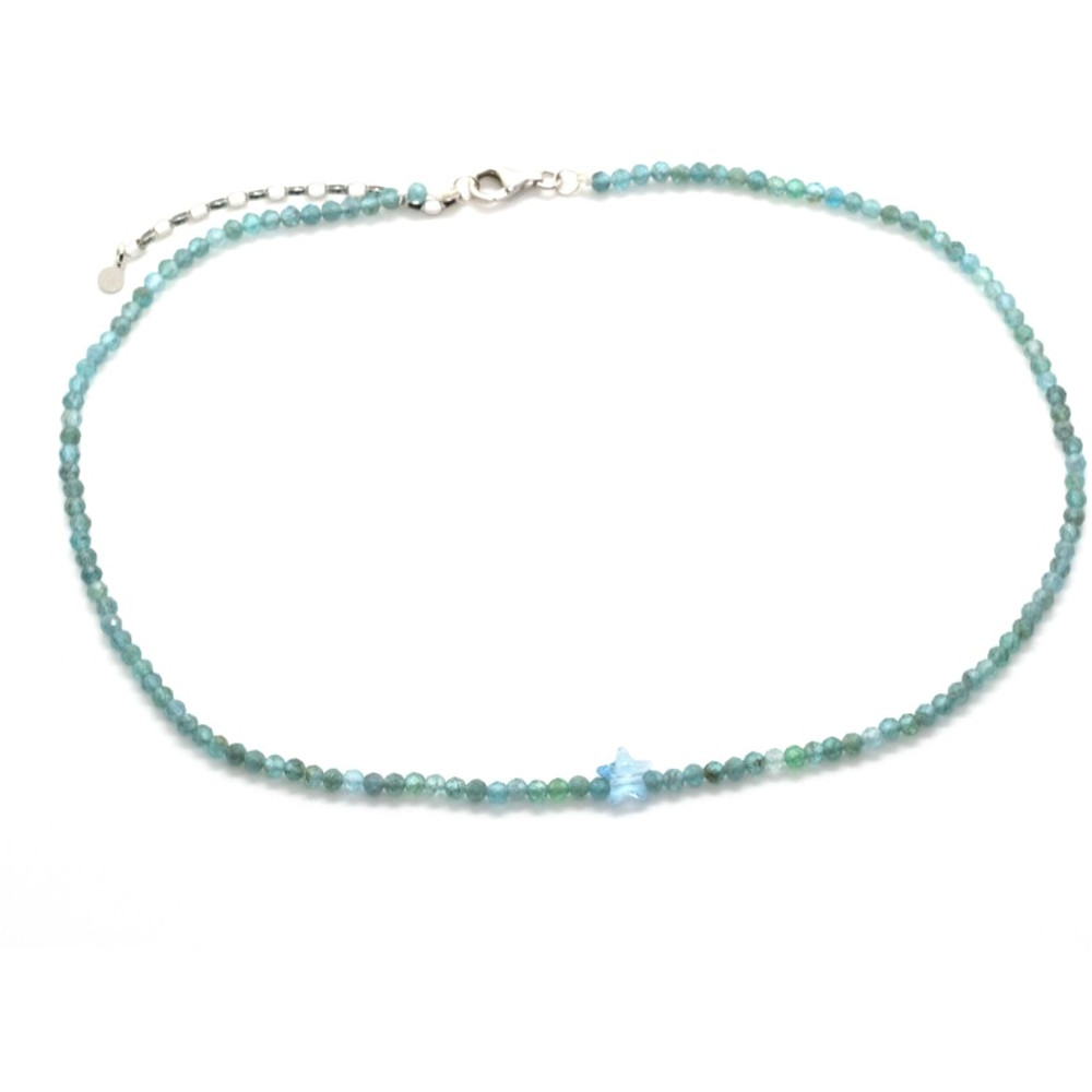 A homok meleg érintése és a tenger varázsosan csillogó kék árnyalatai adták az inspirációt SAND & SEA kollekciónkhoz. Az egyedi, kézzel készített darabok, drágakövek és szikrázó Swarovski kristályok felhasználásával, aprólékos kézi munkával születnek. A csillogó nyaklánc 925-ös ródiumozott, olasz ezüstből és a tengerparti föveny színeiben pompázó labradoritból, aprólékos kézi munkával készült. Az izgalmas színvilágú, drágakő gyöngyök ragyogása zárja körbe az ékszer fő elemét képező, csillag alakú, arany színű SWAROVSKI kristályt, amelynek a Swarovski által kifejlesztett csiszolási mechanizmus ad egyedülállóan izgalmas csillogást. A kézi készítés miatt az egyes nyakláncok mérete eltérhet. A fotón szereplő ékszer színei a valóságtól különbözhetnek.